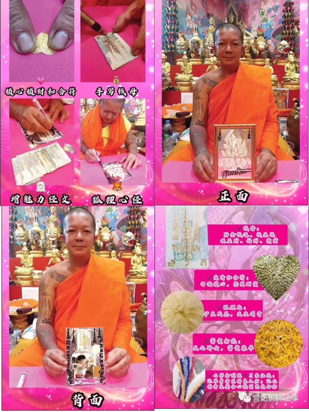 古巴迷师傅特别为圣物添加:✔️狐狸毛:护主成愿,天生媚骨‼️✔️钱母:助金钱运,吸正财偏财横财运‼️✔️富贵金花:天之骄女,富贵荣华‼️✔️爱情和合符:勾魂锁心,愈发甜蜜‼️✔️经粉:是多种经文多种功效的集合‼️✔️七彩金刚绳➕月老红线:让单身者觅得良人归;让已婚者夫妻合心稳固恩爱如初‼️